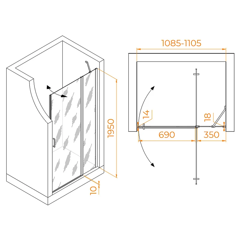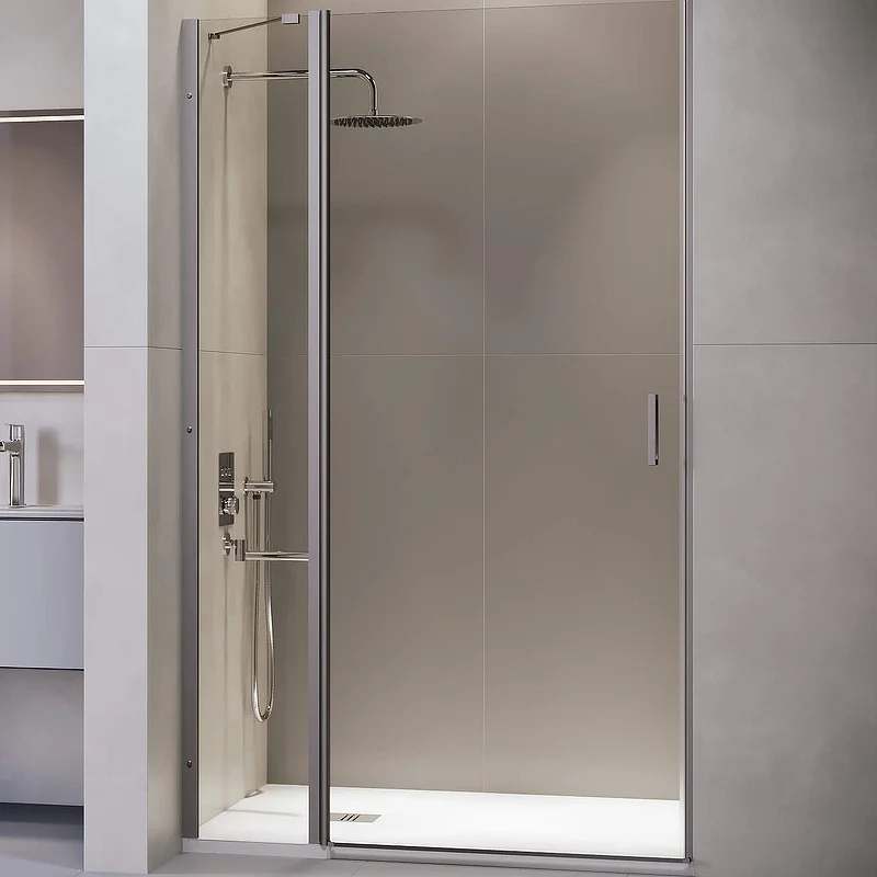 Элегантные стеклянные двери с пристенными профилями придают ванной комнате изысканность и строгость. Модели оснащены маятниковой петлёй, с защитой от провисания и подъёмом двери при открытии. Такой системой будет особенно удобно пользоваться если дверь установлена на плитку с встроенным трапом. Изделия оснащены Распашные двери открываются как наружу, так и внутрь, что обеспечит максимальный комфорт в процессе использования душевого пространства.