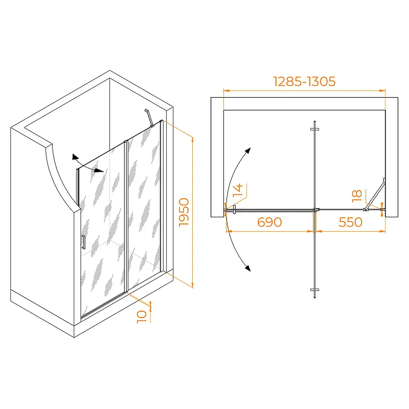 Элегантные стеклянные двери с пристенными профилями придают ванной комнате изысканность и строгость. Модели оснащены маятниковой петлёй, с защитой от провисания и подъёмом двери при открытии. Такой системой будет особенно удобно пользоваться если дверь установлена на плитку с встроенным трапом. Изделия оснащены Распашные двери открываются как наружу, так и внутрь, что обеспечит максимальный комфорт в процессе использования душевого пространства.