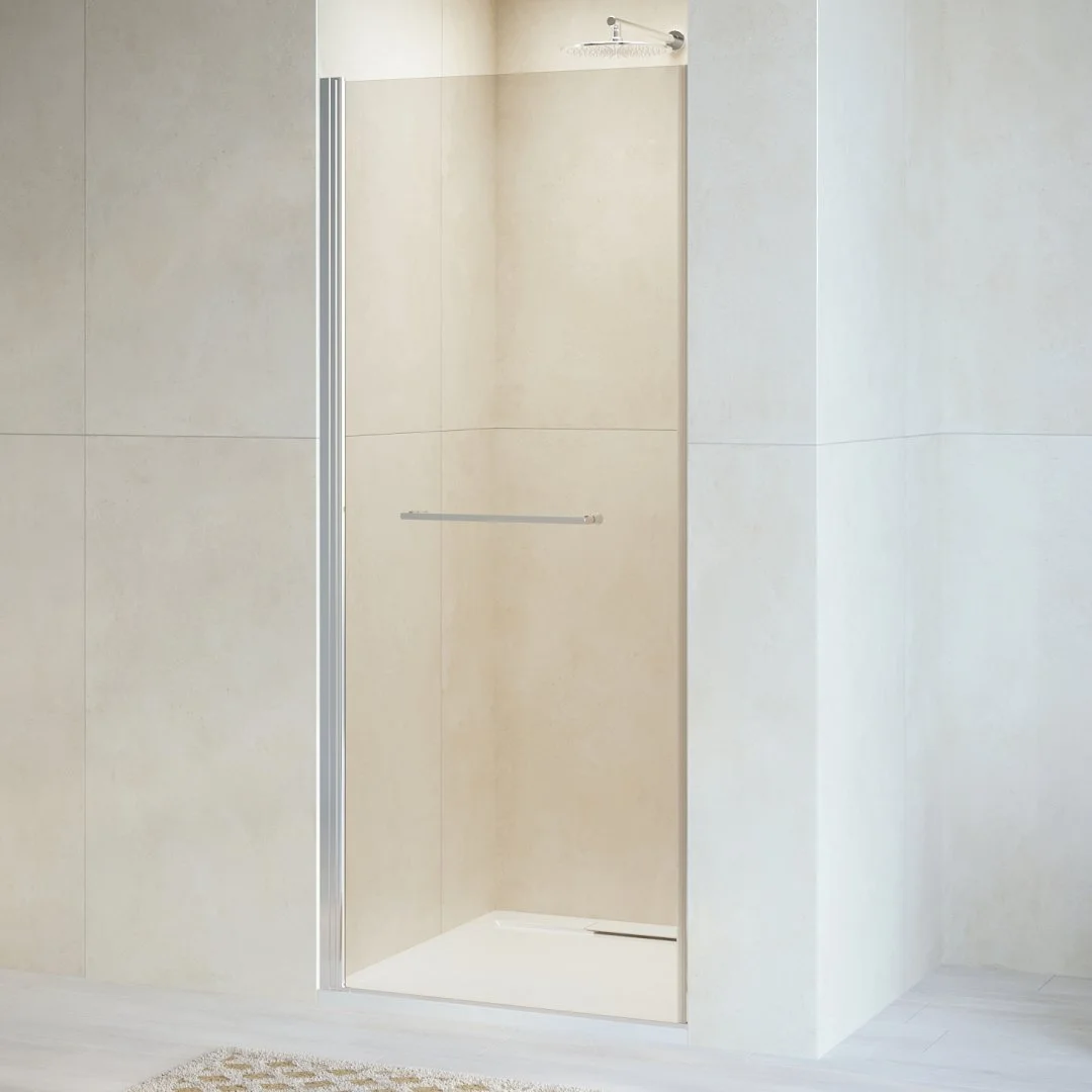 Душевая дверь распашная с маятниковой петлей (открытие только наружу). Маятниковые петли с функцией подъема двери. В комплекте нижняя пороговая планка. Стальная ручка - полотенцедержатель. Трап или поддон приобретается отдельно.