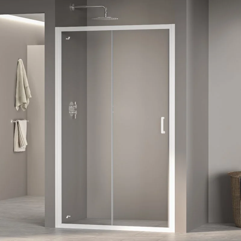 Высота общая двери составляет 1950 мм, а ее конструкция – раздвижная, что позволяет с комфортом использовать пространство в ванной комнате. Дверь имеет магнитный уплотнитель, обеспечивая первый класс герметичности и защищая ванную комнату от брызг воды.