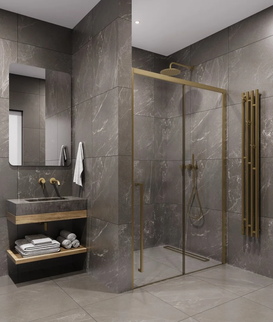 Душевая дверь Timo (T53L) TDSS-130/17C-8L, раздвижная 1300x2000, профиль мат золото, стекло прозрачное 8 мм
