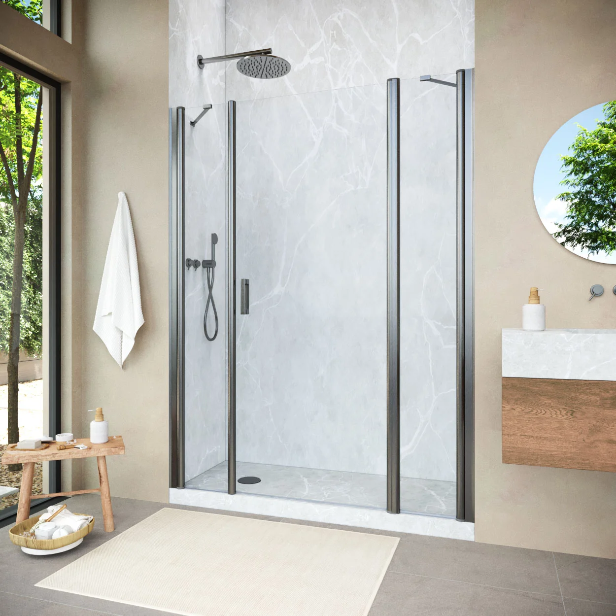 VEGAS-GLASS — это свобода творчества. Сочетайте холодный графит стекла с теплой бронзой профиля или выберите нежный сатин в обрамлении строгого матового хрома. Каждая комбинация станет эксклюзивным решением, подчеркивающим ваш безупречный вкус.