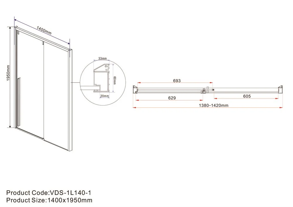Душевая дверь Vincea Lugano VDS-1L140CLB-1, 1400, черный, стекло прозрачное