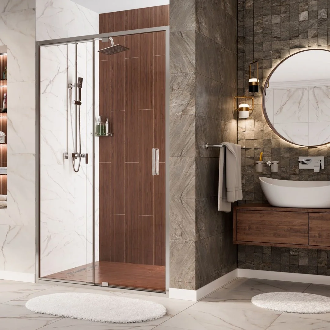 Закаленное прозрачное стекло 6 ммПокрытие стекла WasserSchutzРаспашной механизм из сплава металловАнодированный алюминиевый профиль 30 ммРучка двери из сплава металловРегулирующий профиль до 30 ммТелескопический регулирующий профиль до 50 ммСиликоновый уплотнитель двери с магнитным замком<