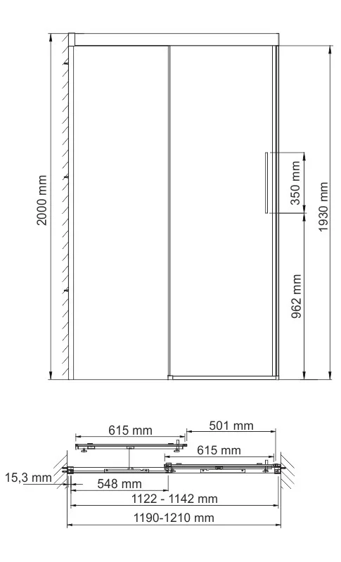 Закаленное прозрачное стекло 8 мм, Покрытие стекла WasserSchutz, Раздвижной механизм из нержавеющей стали с функцией Soft Close, Анодированный алюминиевый профиль 34 мм , Ручка двери из нержавеющей стали, Регулирующий профиль до 15 мм, Силиконовый уплотнитель дверей с магнитным замком, Силиконовые уплотнители