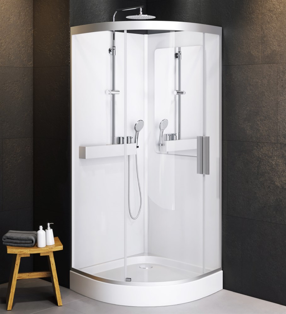 Впервые в доступном сегменте: ультра-модный стиль Dynamic Organic — природные формы в сочетании с четкими линиями, доведенными до совершенства человеком. В кабине этот стиль воплотился в премиальной легкости конструкции: тонкие профили и минимальное количество акрила. Премиальные решения в каждой детали: компактная вместительная полочка с интегрированным смесителем и переключателем, полноразмерное зеркало, встроенное в заднюю стенку, подъемный механизм двери, а также увеличенный до диаметра 250 мм верхний душ, поддон R710. Увеличенная внутренняя площадь: при компактном размере 900х900 мм полезная площадь аналогична кабинам 1000х1000 мм, что позволит без помех разместить кабину даже в небольшой ванной и при этом не чувствовать себя стесненным. Эргономичное решение: расширенное внутреннее пространство в сочетании с увеличенным входом и высотой профиля – с заботой о людях высокого роста.
