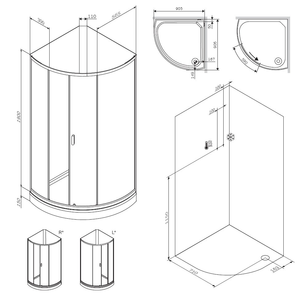 Увеличенные ширина входа и внутреннее пространство за счет использования конструкции с одной дверью. Поддон со съемным экраном - удобство обслуживания. ""