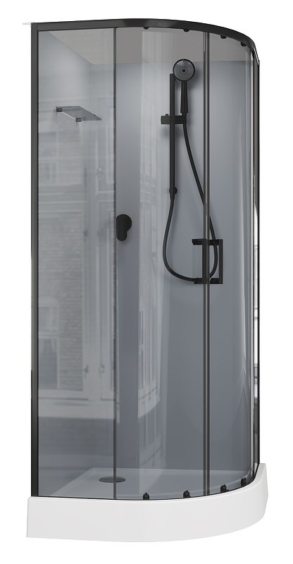 Поддон Aquanet Passion EVO 1/4 900х900-бел./Фурн.-черн./Напр.проф.-черн./Слив-хром №1/3 (258799)