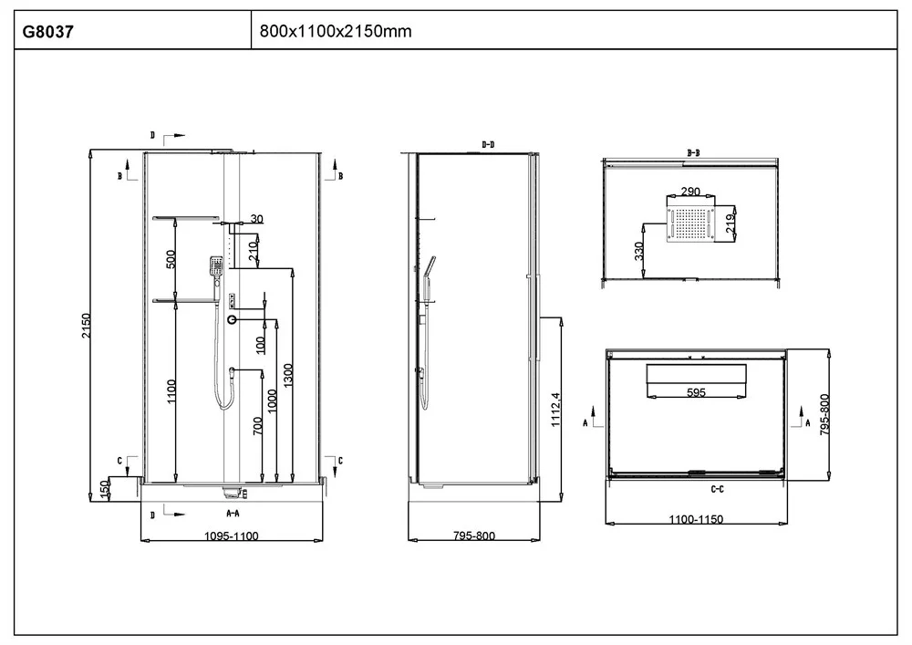 • Потолочная лейка (290 х 219 мм) и ручной душ (3 положения)