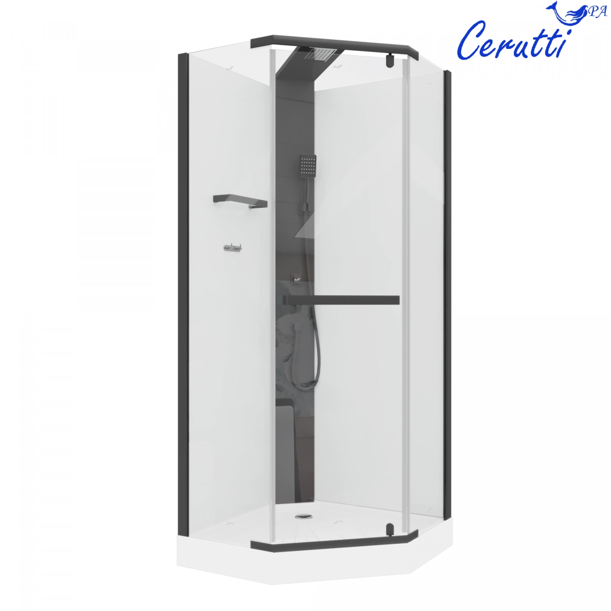 Душевая кабина Ceruttispa CHIKA901B без крыши 90x90x215-225 профиль черный, стекло прозрачное