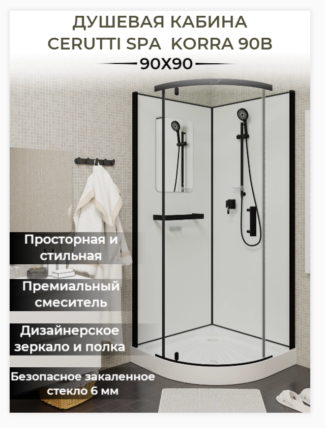 Душевая кабина Ceruttispa KORRA90B 90x90x205 профиль черный, стекло прозрачное