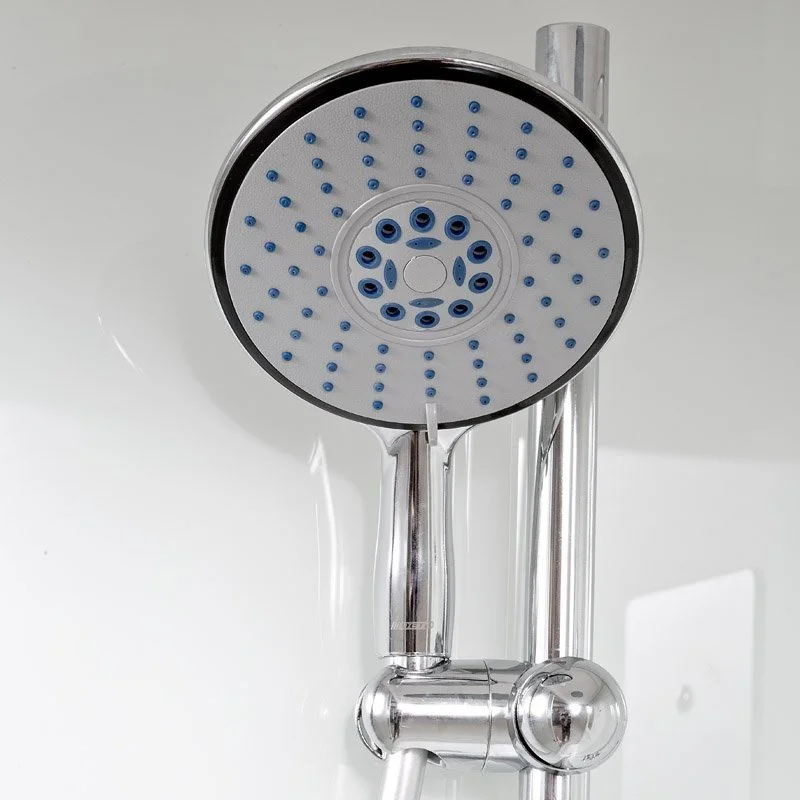 Душевая штанга с регулировкой лейки по высоте и ручная лейка с силиконовыми форсунками диаметром 140 мм с функцией переключения режимов