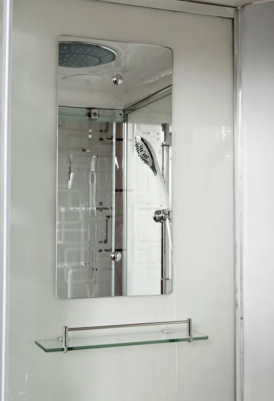 Зеркало и две стеклянные полки с ограничителем • Крепление (крючок)