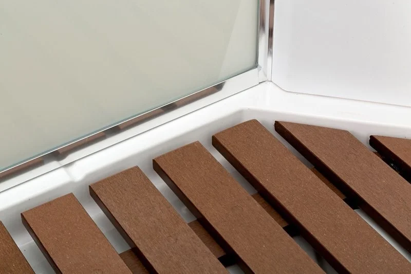 100% акриловый поддон с дренажными отводами высотой 15 см, усиленный металлическим каркасом с вставкой из антибактериального полимера