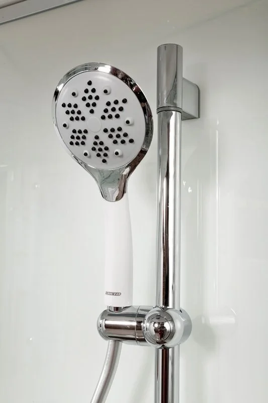 Душевая штанга с регулировкой лейки по высоте и ручная лейка с силиконовыми форсунками