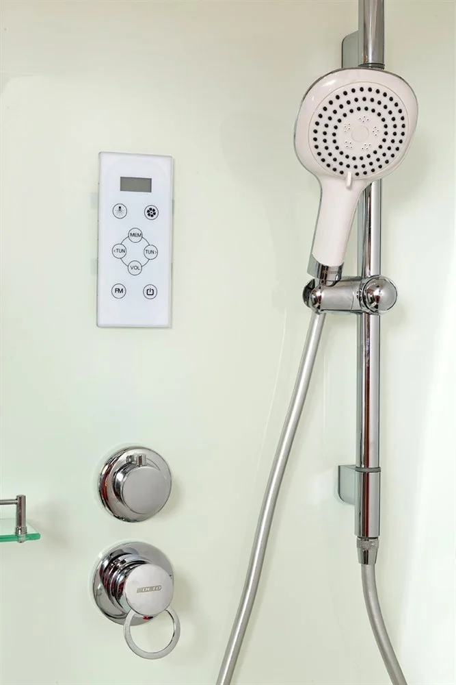Монтаж душевой кабины осуществляется без использования силикона, с возможностью сборки изнутри, что позволяет подбирать размер душевой кабины в соответствии с размерами ниши для ее монтажа.
