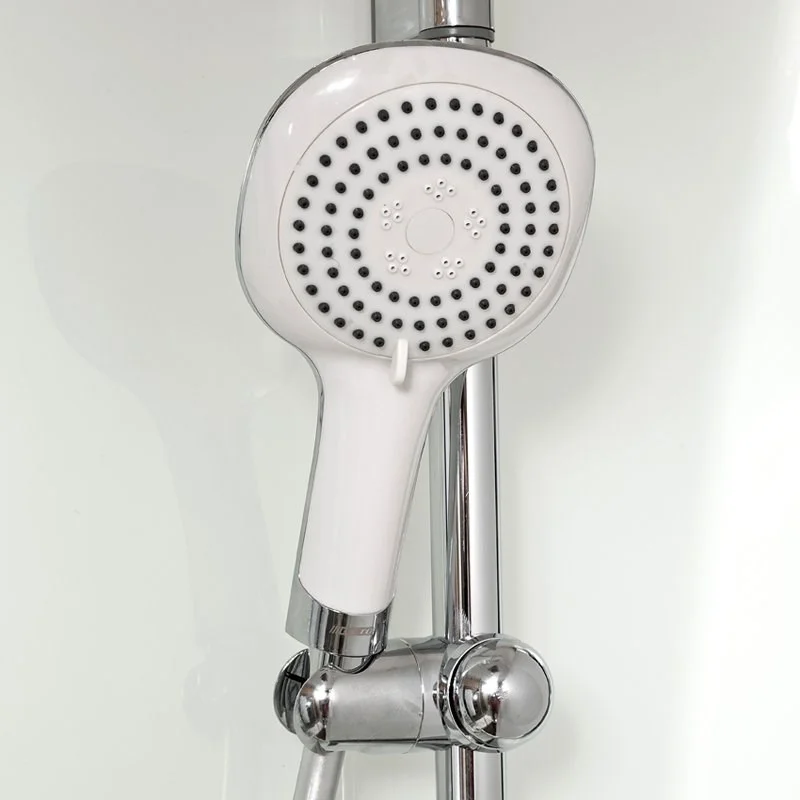 Душевая штанга с регулировкой лейки по высоте и ручная лейка с силиконовыми форсунками с функцией переключения режимов