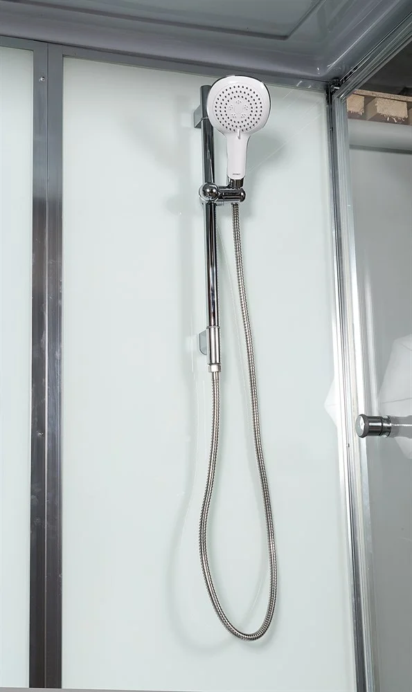 Душевая штанга с регулировкой лейки по высоте и ручная лейка с силиконовыми форсунками с функцией переключения режимов