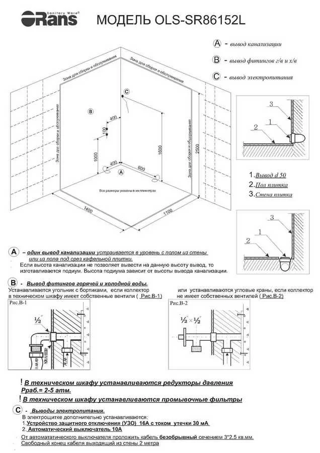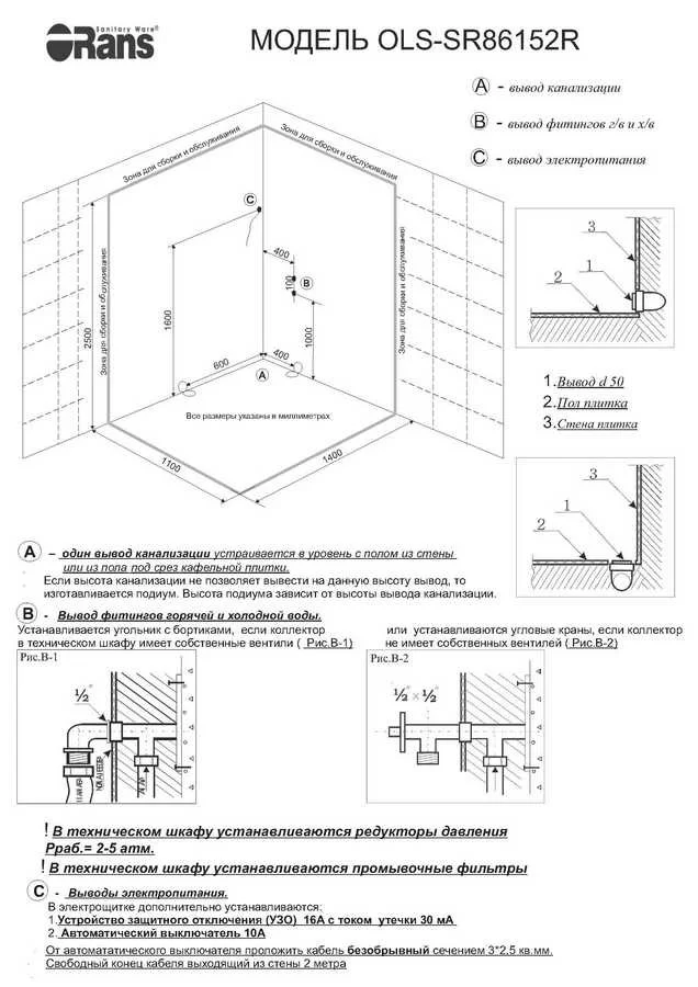 - Верхний и ручной душ (латунный смеситель с душевой лейкой);