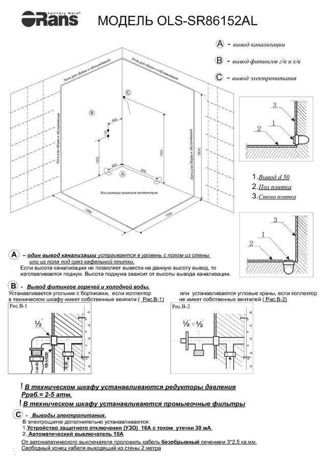 Душевая кабина Orans SR-86152A, 110 x 80 см, поддон 15 см 8615200