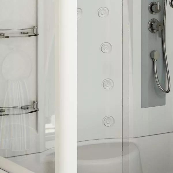— Высокий поддон из высококачественного сантехнического акрила оснащен встроенным удобным сиденье