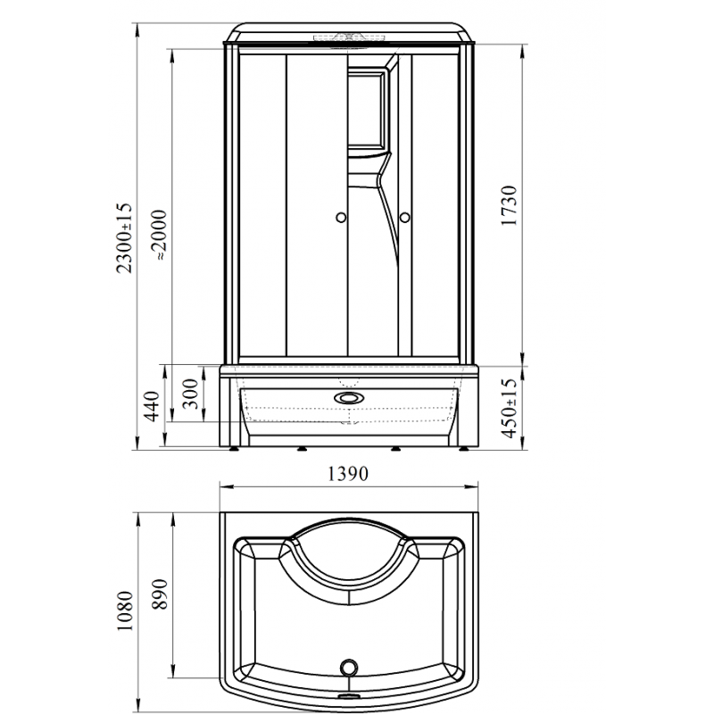 Душевая прямоугольная кабина "Диана 2" 108х139 — оптимальное решение для просторных ванных комнат.