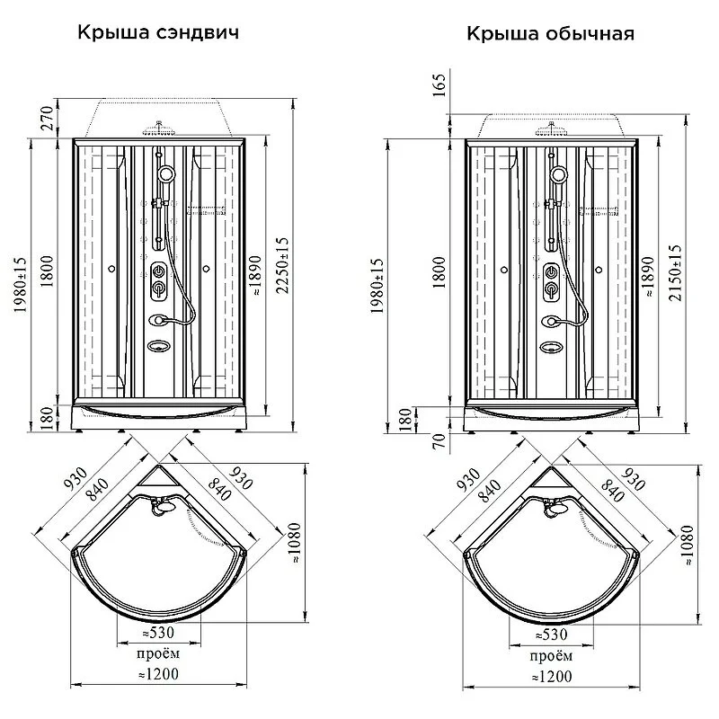 Душевая кабина Radomir Паола 93х93 1-05-6-0-0-0571 стекло матовое, поддон с каркасом и сифоном, профиль черный