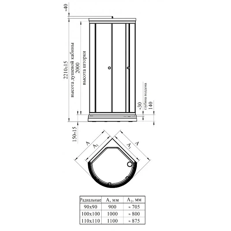 Душевая кабина Radomir Стронг 90х90 1-05-1-0-0-1801 стекло матовое, поддон с каркасом и сифоном, профиль белый