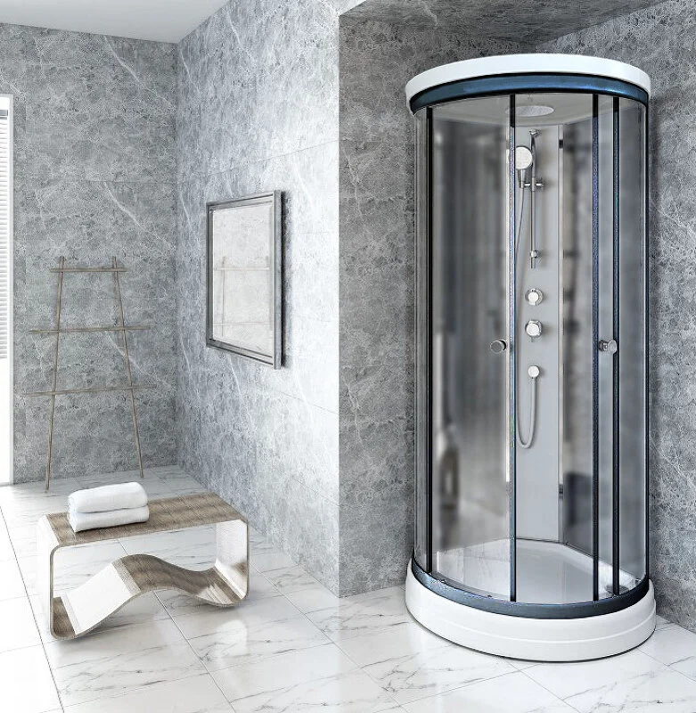 Душевая кабина Radomir Стронг 90х90 1-05-6-0-0-1801 стекло матовое, поддон с каркасом и сифоном, профиль черный