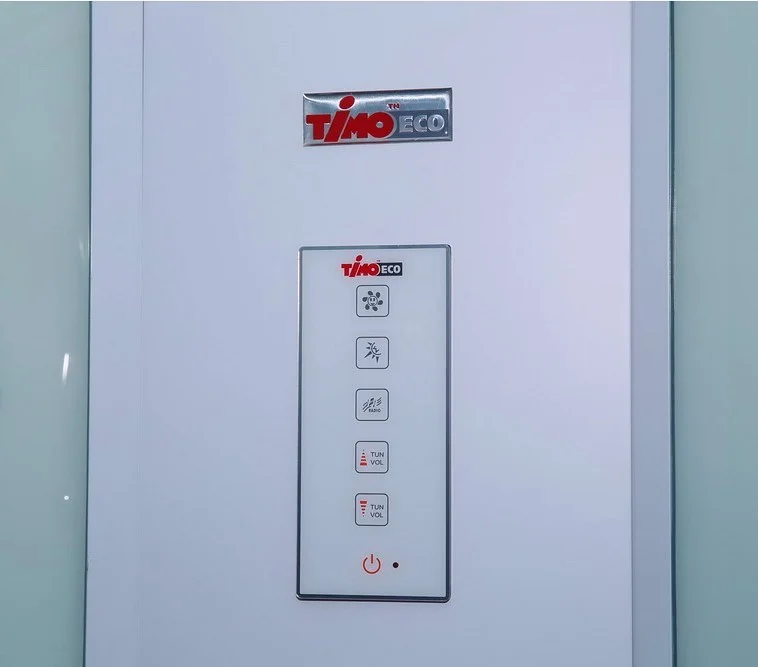 - комплектация: сенсорный пульт управления; FM-радио; эл. вентиляция; подсветка верхняя;смеситель однорычажный трехрежимный; верхний душ; ручная лейка на регулируемой по высоте штанге;гидромассаж спины (6 джет); стеклянная полочка; саморугулирующиеся двойные роллики