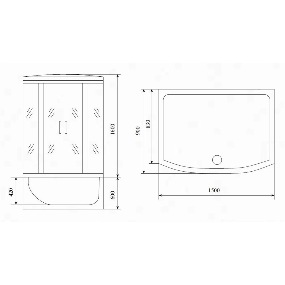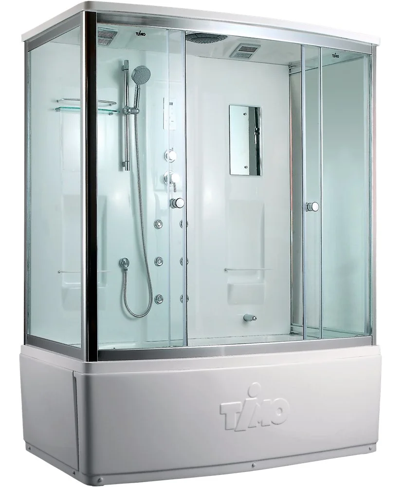 - комплектация: сенсорная панель управления,FM радио; стеклянные полочки; зеркало;электр. вентиляция; подсветка; однорычажный четырехрежимный смеситель гидромассаж спины (6 джет); верхний душ; ручная лейка на регулируемой по высоте штанге; наполнитель ванны; откидное сиденье с допустимой нагрузкой до 80 кг