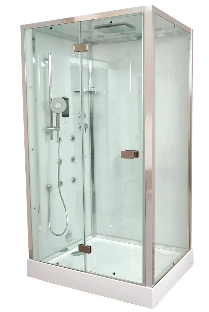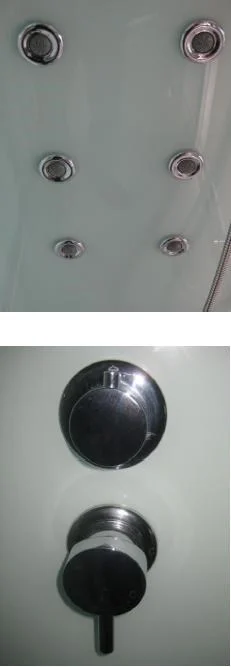 - комплектация: сенсорная панель управления,FM радио; турецкая баня(хамам),ароматерапия,озонатор,хромотерапия; гидромассаж спины; верхний душ; ручная лейка на регулируемой по высоте штанге; электр. вентиляция