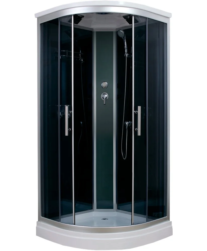 - задние стенки: зеркальное тонированное ударопрочное стекло 5мм. Передние стекла:прозрачное тонированное, 5мм, закаленное, ударопрочное