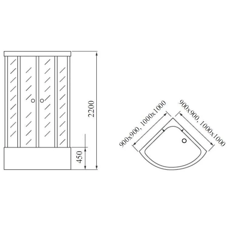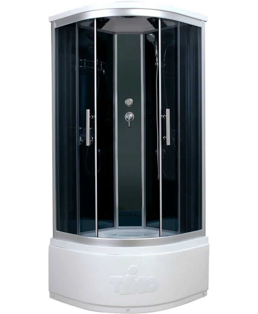 - задние стенки: зеркальное тонированное ударопрочное стекло 5мм. Передние стекла: прозрачное тонированное, 5мм, закаленное, ударопрочное. Конструкция дверей: раздвижная