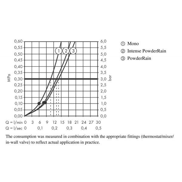 • расход воды при 3 барах: 10.6 л/мин