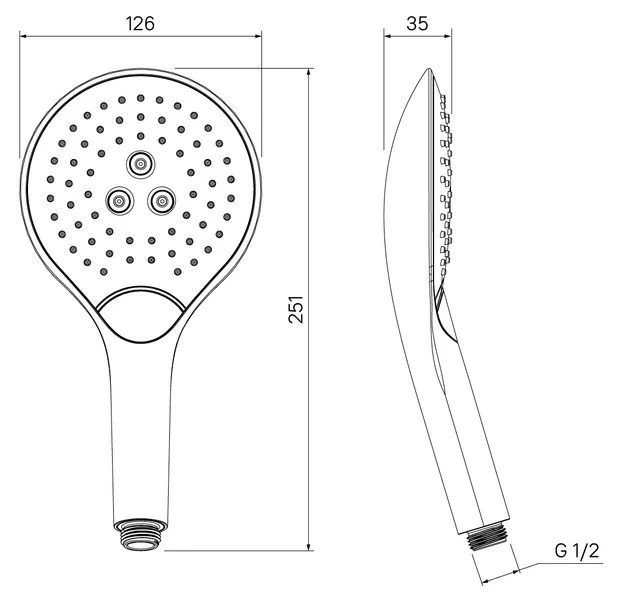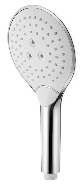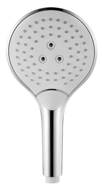 Ручная лейка из ABS-пластика, диаметр 126 мм. Цвет белый/хром. Материал: лейка из ABS-пластика, силиконовые форсунки. 3 режима: Rain, Mist, Rain&Mist, кнопочное переключение режимов.