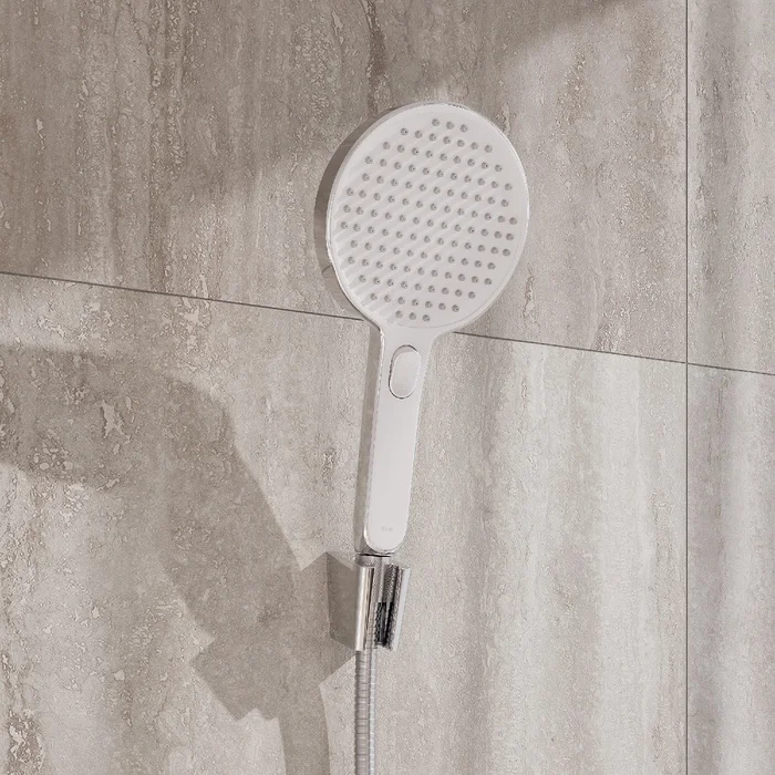 Хромированная душевая лейка Esper с белой лицевой частью – универсальный аксессуар для смесителей и душевых систем в популярной круглой форме. Оптимальный диаметр 130 мм и эргономичный дизайн делают ее удобной для использования всеми членами семьи, а 3 режима (Rain, EcoRain и EcoRain+) позволят подобрать подходящий под любое настроение и при необходимости экономить расход воды.