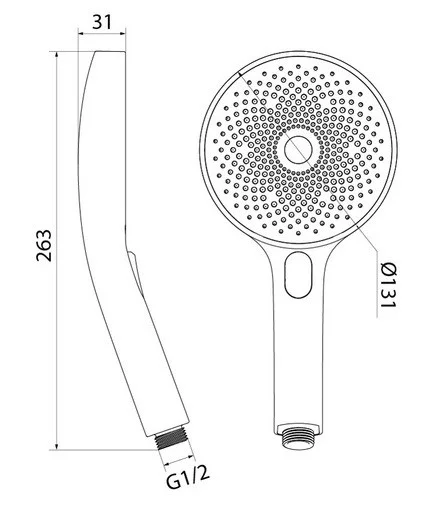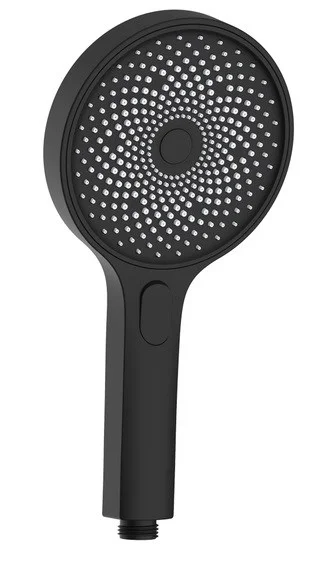 Ручная лейка из ABS-пластика, диаметр 130 мм. Цвет: чёрный матовый, форсунки - белые. Материал: лейка из ABS-пластика, форсунки из силикона. 3 режима, кнопочное переключение режимов.