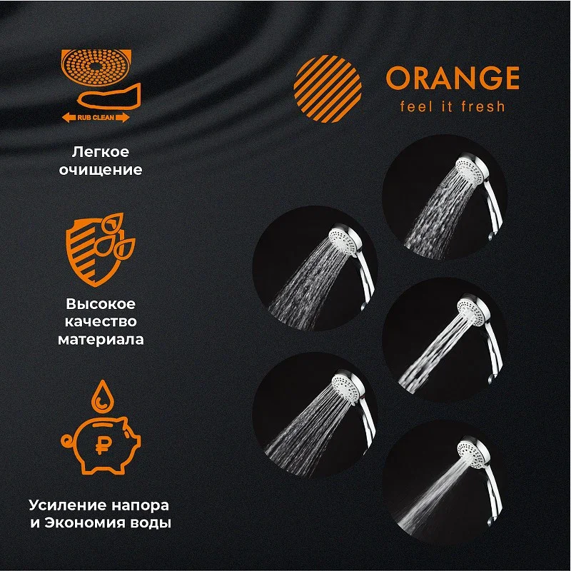 Душевая лейка Orange O-Shower OS02 d 100 мм, 5 режимов, хром
