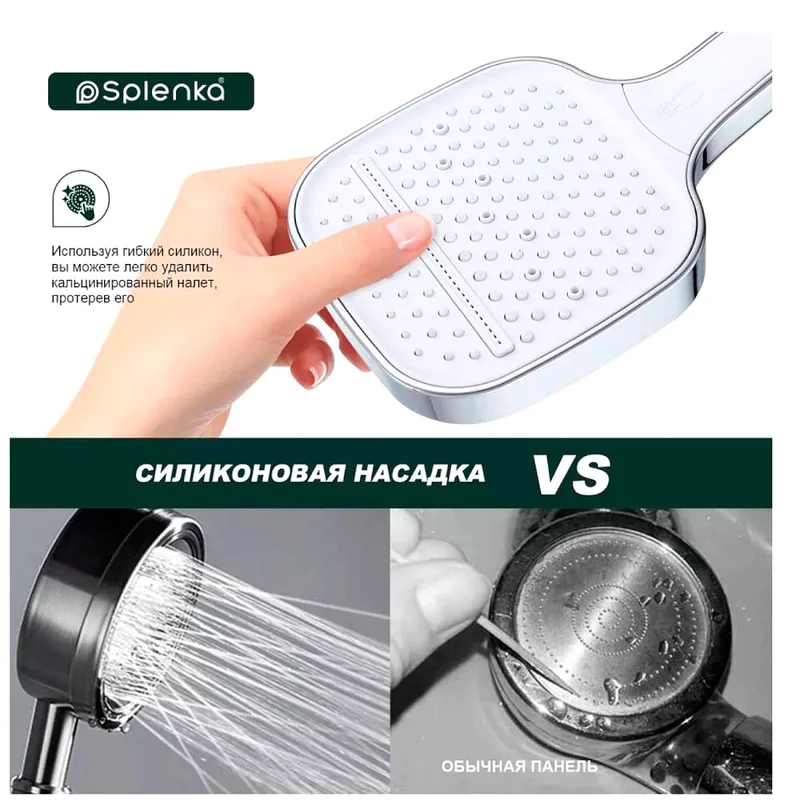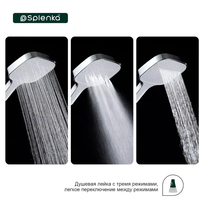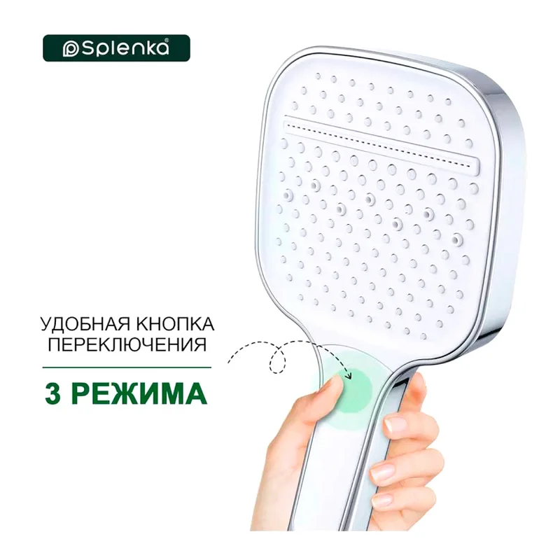 Душевая лейка Splenka S450.54 3-х режимная пластик/силикон, хром