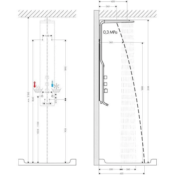 • длина держателя для душа: 420 мм