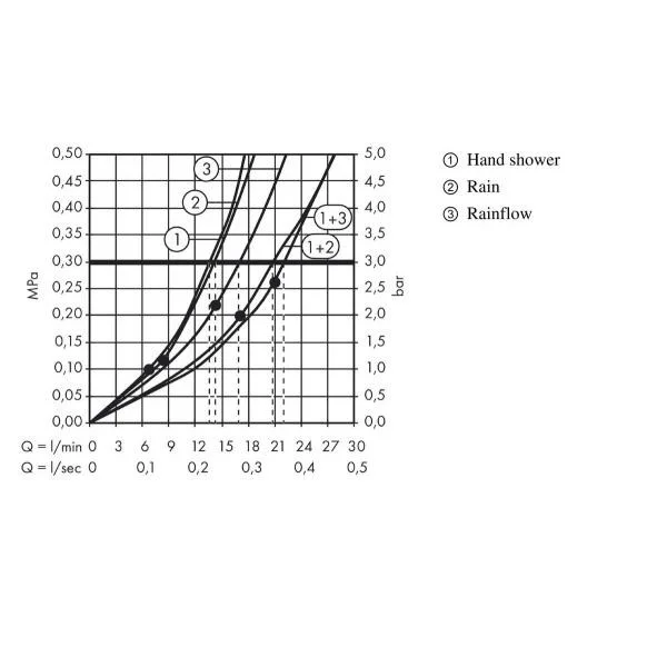 • расход воды для ливневой струи (при 3 бар): 17 л/мин