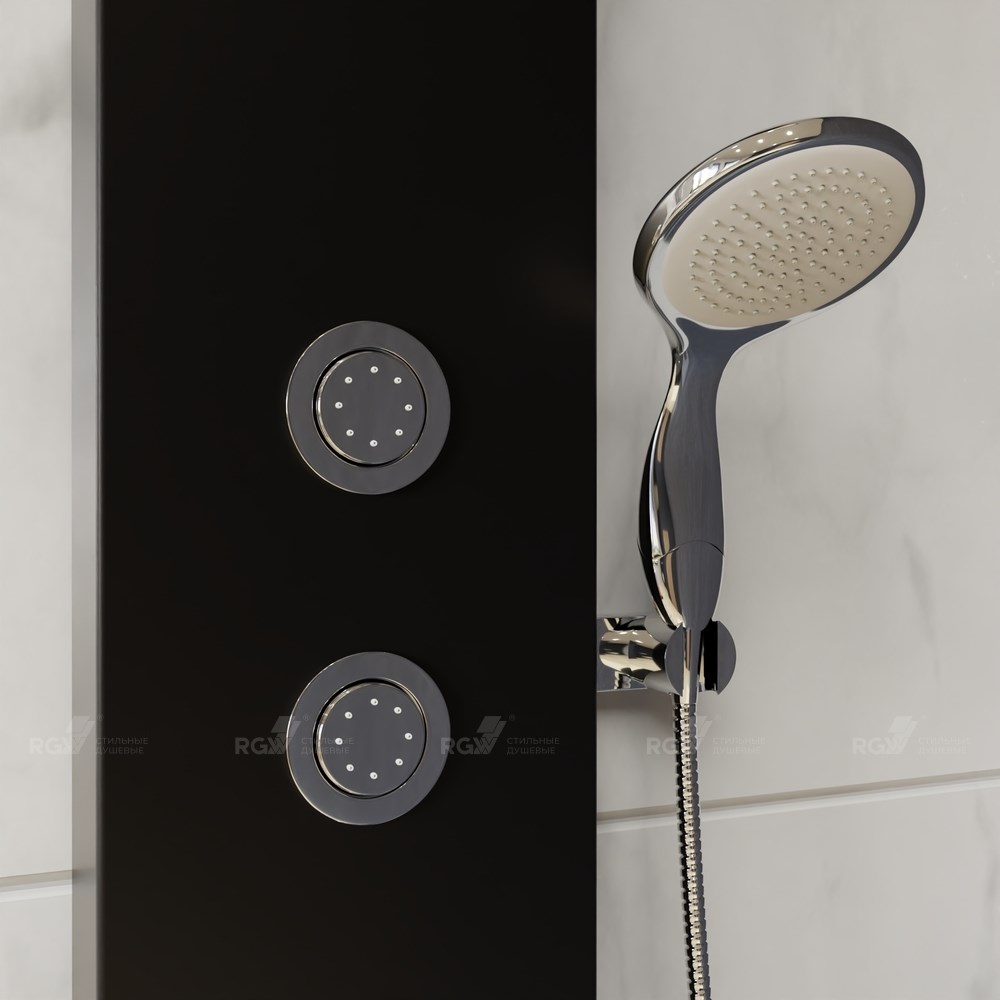 Стильная, современная панель. Головной душ Нержавеющая сталь, функция Водопад. Ручной душ ABS, 1 функция. Гидромассаж 3 г/м ABS. Смеситель. Подключение гибкая подводка 1/2 дюйма.
