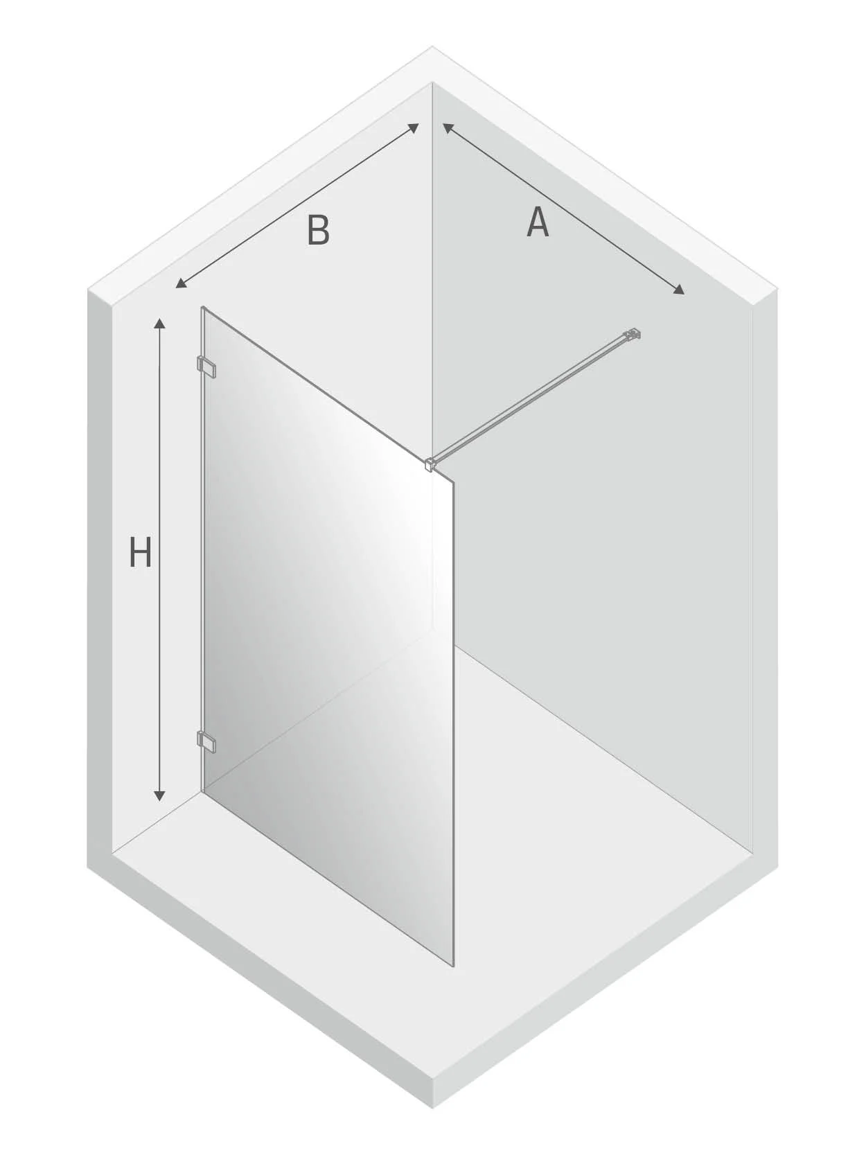 Ширина входа (B): max 120 см (регулируется в меньшую сторону по необходимости);