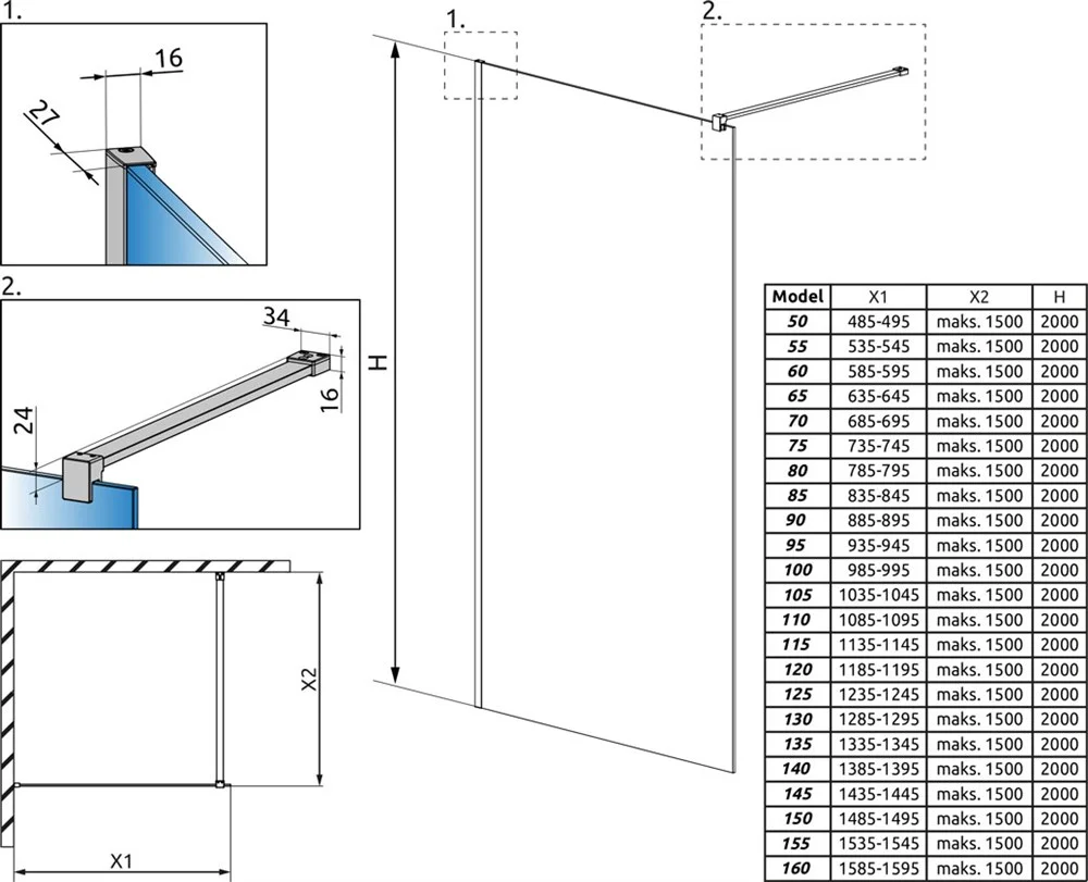 Купить Душевые стенки производства Radaway (Польша), коллекция Modo X II;Modo X III, код товара: 252413 можно выгодно в Сантемо.ру: