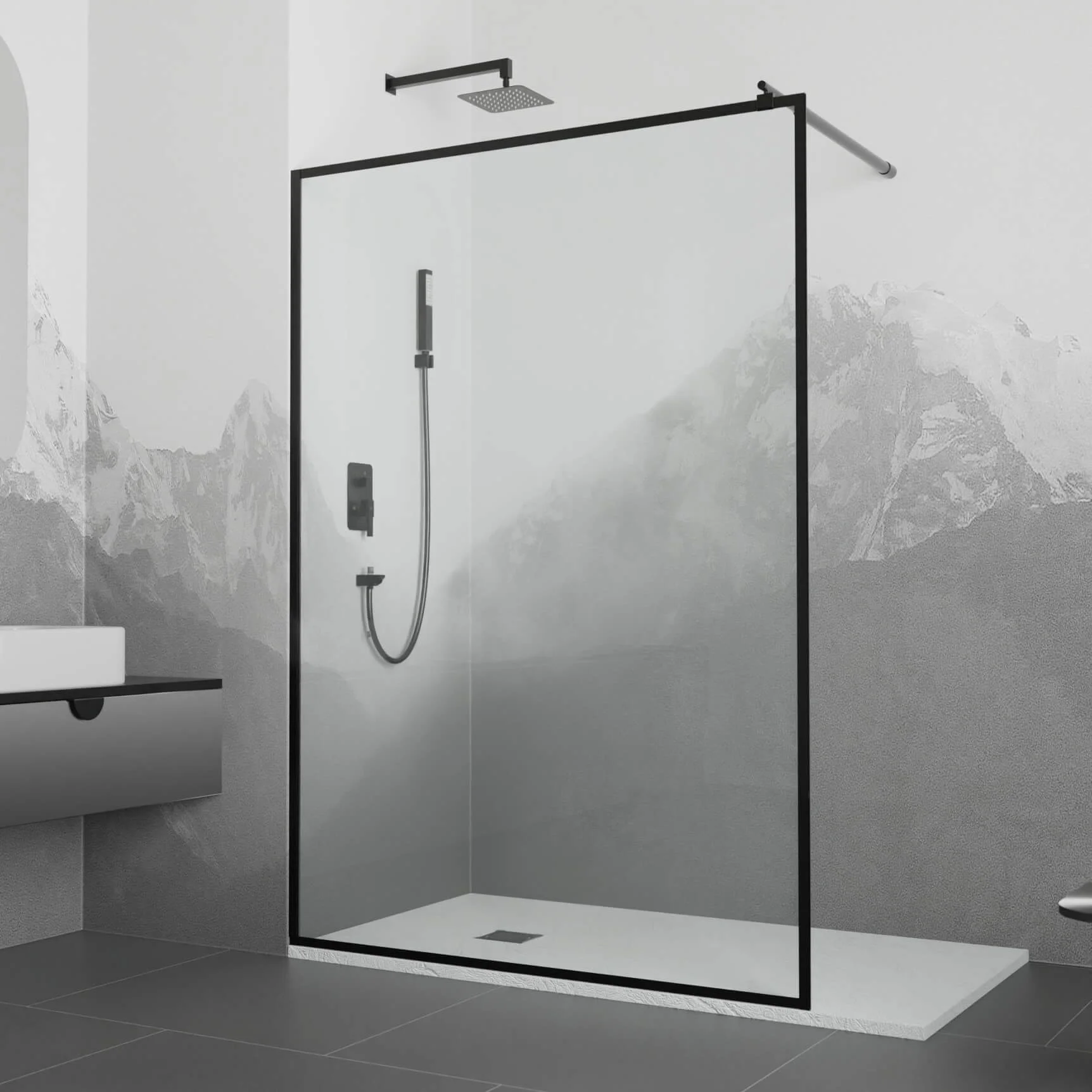 Перегородка оснащена прозрачным закаленным стеклом толщиной 8 мм, которое не только визуально расширяет пространство, но и придает современный и элегантный вид. Благодаря своей прочности, закаленное стекло обеспечивает высокий уровень безопасности и долговечности, что делает перегородку идеальным выбором для использования в ванной комнате.