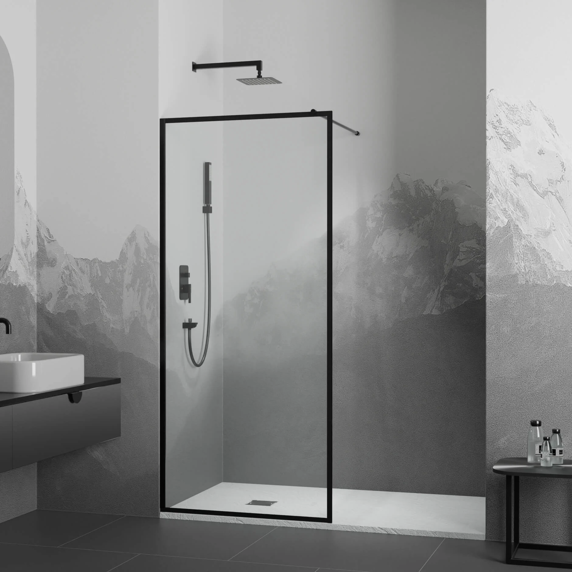 Перегородка оснащена прозрачным закаленным стеклом толщиной 8 мм, которое не только визуально расширяет пространство, но и придает современный и элегантный вид. Благодаря своей прочности, закаленное стекло обеспечивает высокий уровень безопасности и долговечности, что делает перегородку идеальным выбором для использования в ванной комнате.
