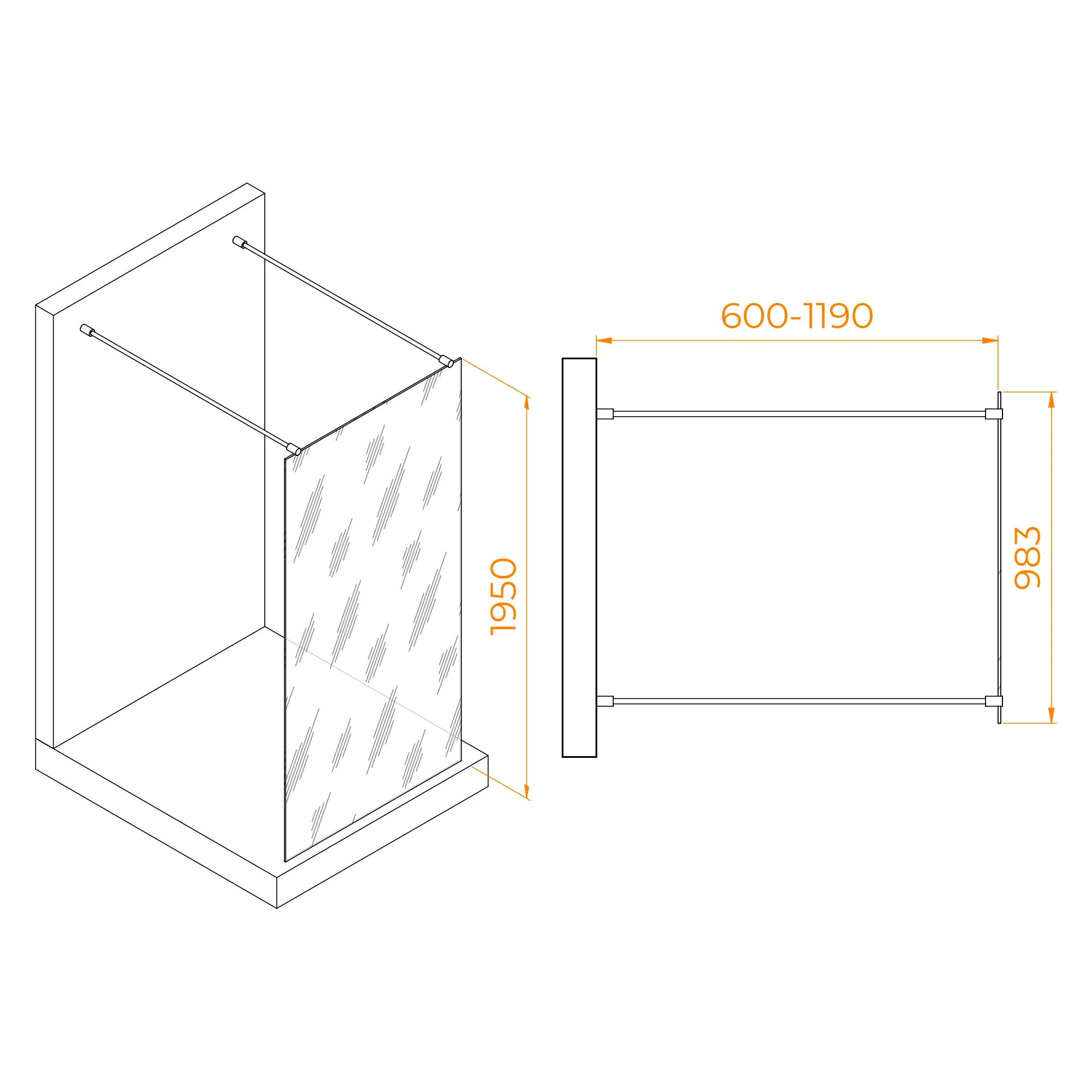 Душевая перегородка RGW WA-016 с высотой перегородки 195 см обеспечивает оптимальную конфиденциальность и комфорт. Большая высота позволяет вам наслаждаться освежающим душем, не беспокоясь о разбрызгивании воды. Более высокая перегородка также придает вашей ванной комнате ощущение величия, создавая атмосферу спа-салона.