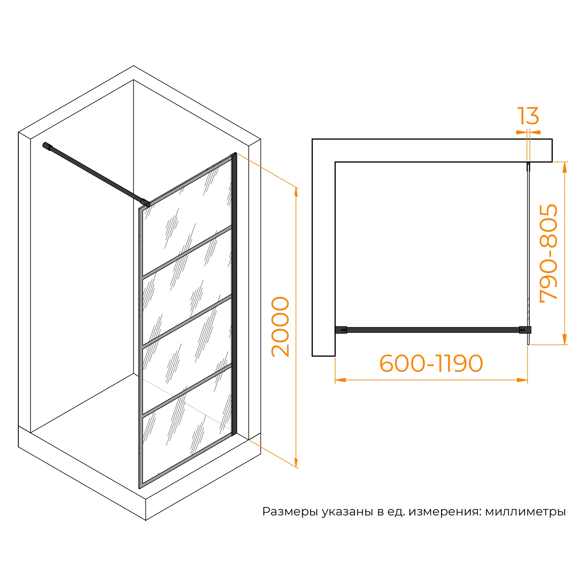 Душевая перегородка WA-019B — идеальное решение для создания стильного и функционального пространства в ванной комнате. С общей высотой 2000 мм, она надежно защищает от разбрызгивания воды за пределы душевой зоны. Перегородка оснащена прозрачным закаленным стеклом толщиной 8 мм, которое не только визуально расширяет пространство, но и придает современный и элегантный вид. Благодаря своей прочности, закаленное стекло обеспечивает высокий уровень безопасности и долговечности, что делает перегородку идеальным выбором для использования в ванной комнате. Профиль, выполненный из анодированного алюминия ALUSTRONG MAX, гарантирует долговечность и устойчивость к коррозии. Черная керамическая краска, нанесенная методом шелкографии. Стильный рисунок: горизонтальные линии и по периметру стекла, добавляет изысканный акцент и современный вид. 3 класс герметичности гарантирует, что вода останется там, где она должна быть, сводя к минимуму риск любого повреждения водой пола в ванной комнате.Универсальный монтаж позволяет легко и гибко установить перегородку в любой планировке ванной комнаты. Дополнительное покрытие стекла с эффектом анти-капля Easy Clean облегчает уход за перегородкой и сохраняет её чистоту. С ресурсом эксплуатации в 15 лет и гарантией 3 года, душевая перегородка WA-019B — надежный выбор для вашего душевого пространства!