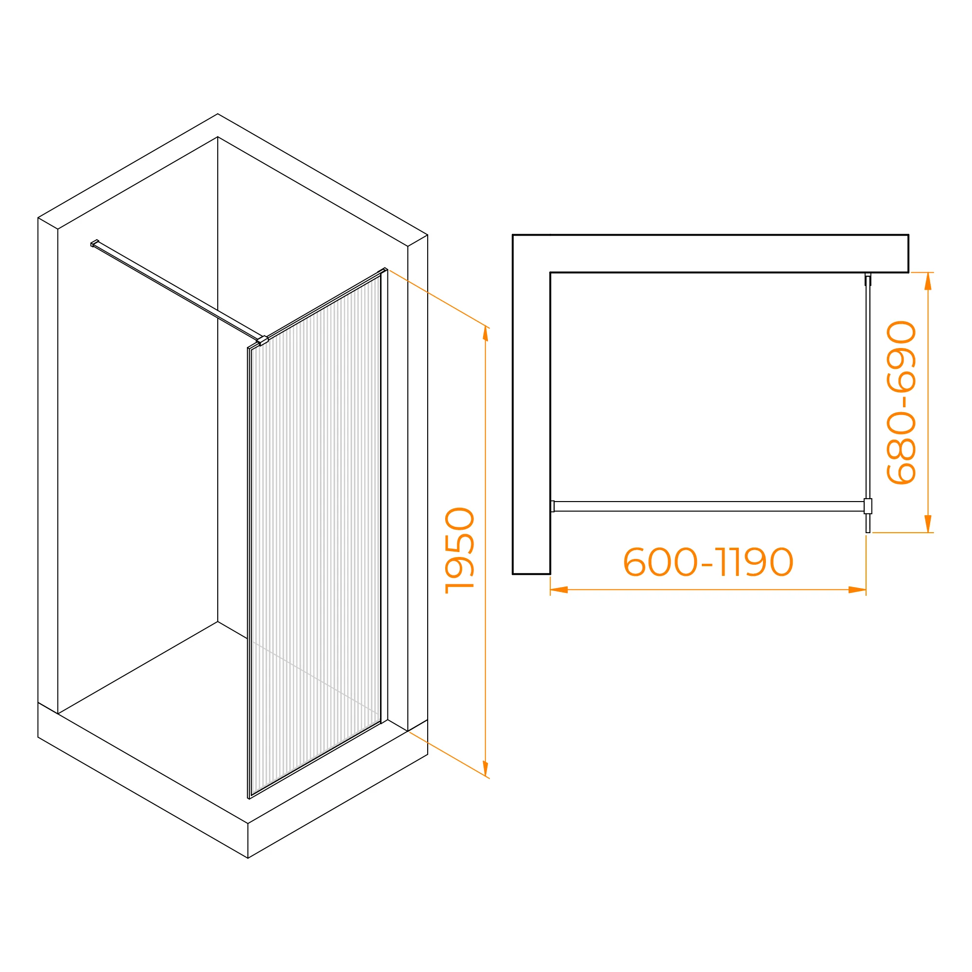 Высота перегородки составляет 195 см, что обеспечит комфортную эксплуатацию даже для самых высоких пользователей. При этом, данная модель обладает высокой герметичностью 3 класса, что предотвратит протекание воды вне границ душевой зоны.